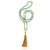 108 Aventurine gemstones and Citrine Guru Bead make this Mala bead necklace. With luxurious long silky tassel that has beautiful metallic gold zari thread flowing through it.