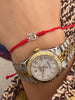 Red Macramé cord has adjustable fit and sterling silver charm.