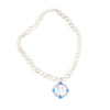 A string of cultured freshwater pearls makes this elegant bracelet with Ik Oankar charm in sterling silver has blue and white topaz acts as a gentle reminder to keep you connected to spirit .